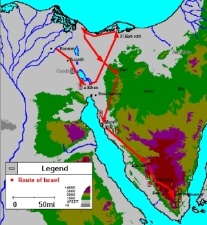 So why do the map makers show routes that obviously do not match the Scriptures? Many people do not believe the miracles recorded in the Bible really happened, so they attempt to find alternative explanations. They can't explain how 3 to 6 million people cross the Red Sea, so they assume Moses meant the Reed Sea - a swamp just north of the Red Sea. A drought must have dried up the swamp, allowing the Israelites to reach the Sinai Peninsula.