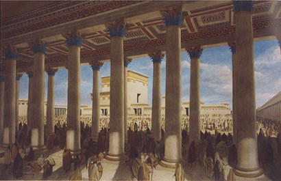 If I have all of this correct, would you know of a picture of the temple, especially of the inside, that I could print off for a class that I am to teach next quarter? At that time we will be starting the New Testament and I want to be able to give them a bit of background on the temple and some visuals (they are 5 and 6-year-olds). I would like to be able to give them an idea of where Zacharias was when the angel spoke to him, where the moneychangers were, etc. Visual aids seem to help this age group a lot.