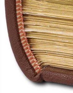 We all know what gold-gilded edges are, but art gilt is where the edges of the paper are dyed red, and then gold foil is melted onto that. Thus the gold looks more orange-gold and stays put longer, examples can be seen at the right. Both the upper-end Allan's and Cambridge possess that feature.