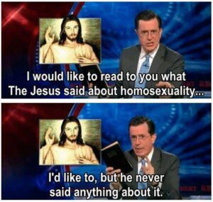 Essentially, this picture is an attempt to show that homosexuality is just fine because Jesus never spoke about it. Lots of people seem to take this view of only doing or believing the "words in red" (most Bibles have the words of Jesus in the New Testament in red ink instead of the usual black). This is the main focus of this article, not the issue of homosexuality. Yes, Jesus came as both human (Hebrews 4:14-15; Luke 2:52) and God (John 1:1-18; Matthew 1:23), so clearly His words hold very much importance; they are the words of God (John 12:49)! Yet, this does not nullify the rest of the Bible, does it? Of course not; the rest of the Bible is the word of God as well. This point can even be made from the position of one who only believes the words in red. The following list contains passages where Jesus refers to passages from the Old Testament and implies that they are the true and authoritative word of God: Matthew 4:1-11; 19:4-5; 21:42-44; 24:15; Mark 12:26-27; Luke 4:16-21, etc. Clearly, Jesus studied the Old Testament very well, believed it, and viewed it as authoritative. We should as well.