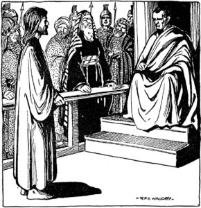 However, this does not end the chief priests’ difficulties. They can convict Jesus, but they can’t sentence Him to death. That’s a Roman prerogative. Thus, their next hurdle is to convince Pilate, the Roman governor, that an innocent man ought to die.